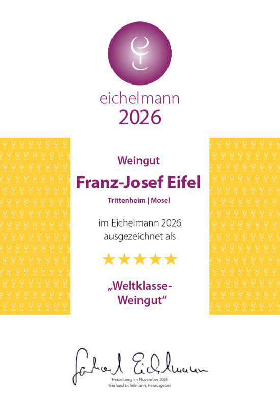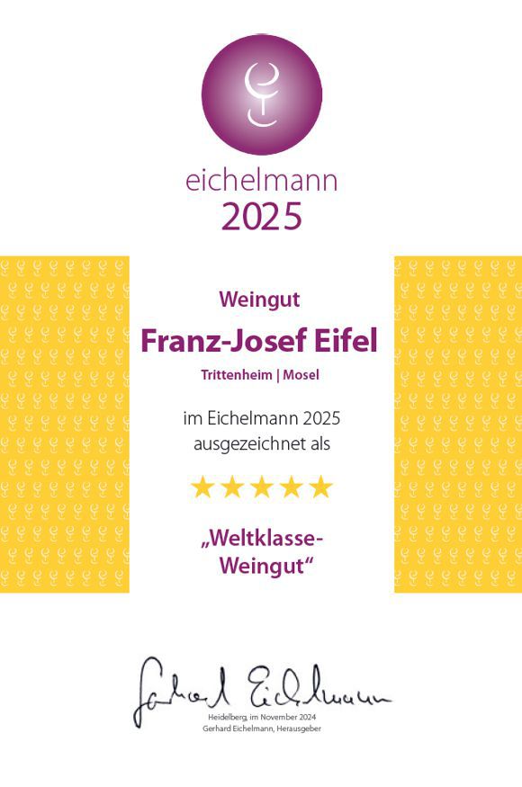 Das Weingut, etwas versteckt in Trittenheim gelegen, wird seit 1985 in vierter Generation von Franz-Josef Eifel geführt, 1976 war der erste Jahrgang, den er selbst vinifizierte. Mit 1,3 Hektar fing er an, heute verfügt er über 5 Hektar Weinberge in den Trittenheimer Lagen Apotheke und Altärchen, erwähnenswert sind vor allem die Parzellen Jungheld und Sonnenfels. Riesling, mit bis zu 80 Jahre alten Reben, nimmt 97 Prozent seiner Rebfläche ein, dazu gibt es ein wenig Weißburgunder. Die Weinberge werden biologisch bewirtschaftet (Ecovin). Franz-Josef Eifel vergärt seine Weine recht kühl und langsam, teilweise mit den eigenen Hefen. Ausgebaut werden sie teils in Edelstahltanks, teils in Fuderfässern. Das Sortiment ist in drei Stufen gegliedert. Die Basis bilden die Kabinettweine und der Riesling „Su wie frieja“, der aus einer 2005 neu gepflanzten Steilhangparzelle stammt. Das Mittelsegment bilden Steillagenweine aus der Apotheke von 50 Jahre alten Reben, zwischen 1961 und 1964 gepflanzt, jeweils trocken, feinherb und süß, die feinherbe Variante stammt aus dem Jungheld, einer Teillage der Apotheke. Die Topweine, ebenfalls jeweils eine trockene, feinherbe und süße Variante, kommen von kleinen Felsenterrassen mit wurzelechten Reben in der Apotheke, bis zu 80 Jahre alt, heißen Sonnenfels, „Die große Leidenschaft“ und Goldstückchen. Gelegentlich werden auch Eisweine und Beerenauslesen ausgebaut, auch mit Sekt kann Franz-Josef Eifel punkten. Die Weine werden spontanvergoren, normalerweise; Franz-Josef Eifel denkt nicht daran, allzu viele Dogmen aufzustellen oder die Weine so zu vinifizieren, wie es die aktuelle Mode zufällig gerade vorgibt. Sein Programm ist ausgereift, die Philosophie sehr nachvollziehbar. Seit der ersten Ausgabe empfehlen wir das Weingut als einen der Top-Betriebe an der Mosel – und seitdem hat sich das Weingut nochmals fortentwickelt.